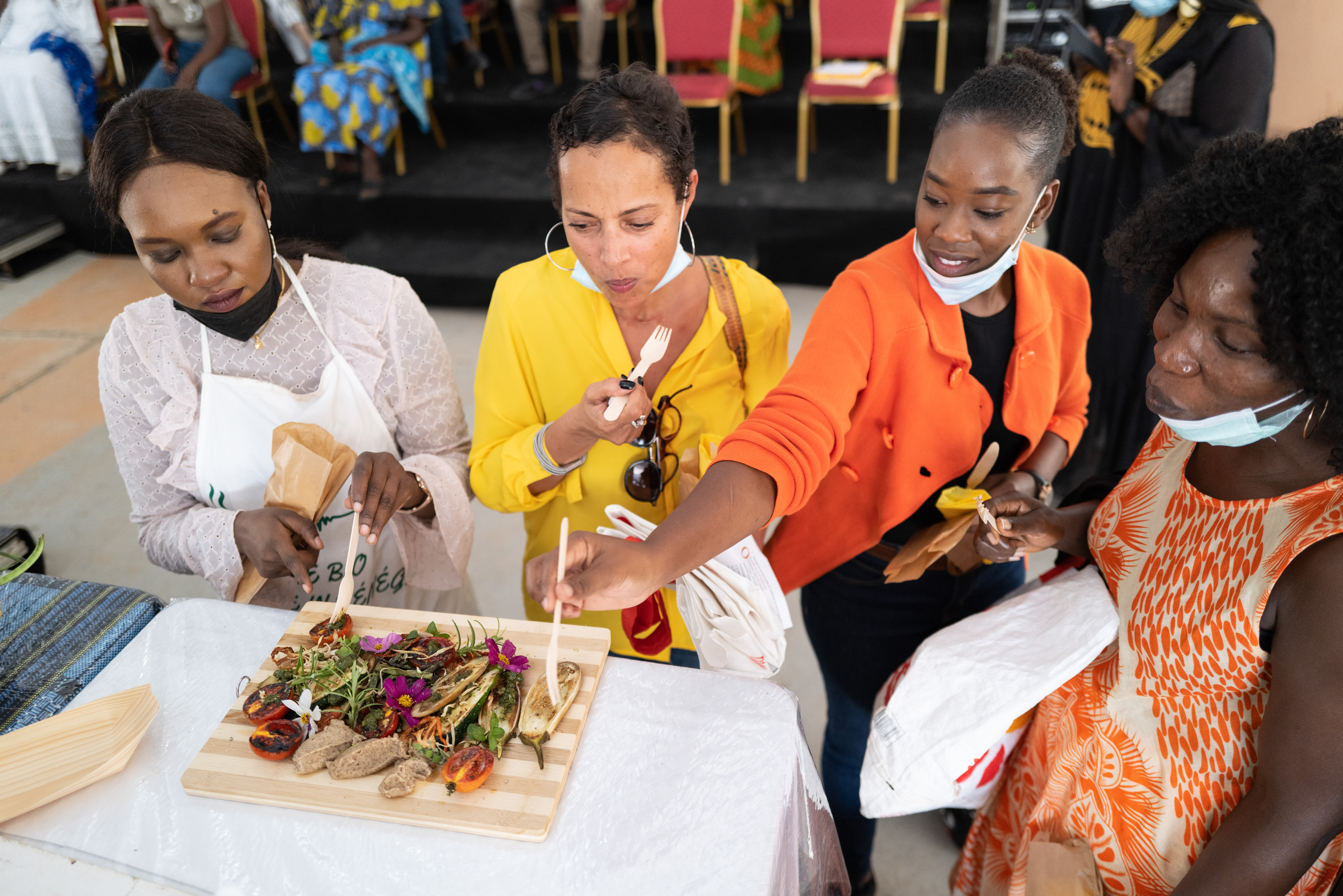 De nombreux ateliers ont eu lieu, animés par des professionnels ou des exposant.e.s. Un premier atelier portant sur les alternatives au plastique en matière d’emballage a été animé par un représentant du Ministère de l’Environnement. Un second avait pour thème « l’accès au marché : les perspectives offertes par les grands distributeurs » en présence du chargé de communication d’Auchan. Ces ateliers, très appréciés, ont été suivis d’ateliers culinaires mettant en valeur les produits des exposantes. Différents chefs cuisiniers, les influenceurs Iba et Karelle, et les bénéficiaires du programme, tous ont mis la main à la pâte.