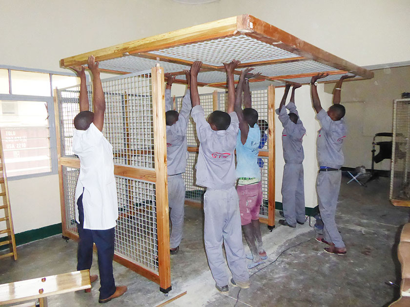 La direction de l’hôpital a d’abord réaménagé le bâtiment pour dégager de nouveaux espaces de travail. Il a ensuite été entièrement rééquipé par le programme « Développement de la MPR » avec un kit complet de matériel d’une valeur de 20.360 euros, en partie fabriqué sur place et en partie importé de Belgique.