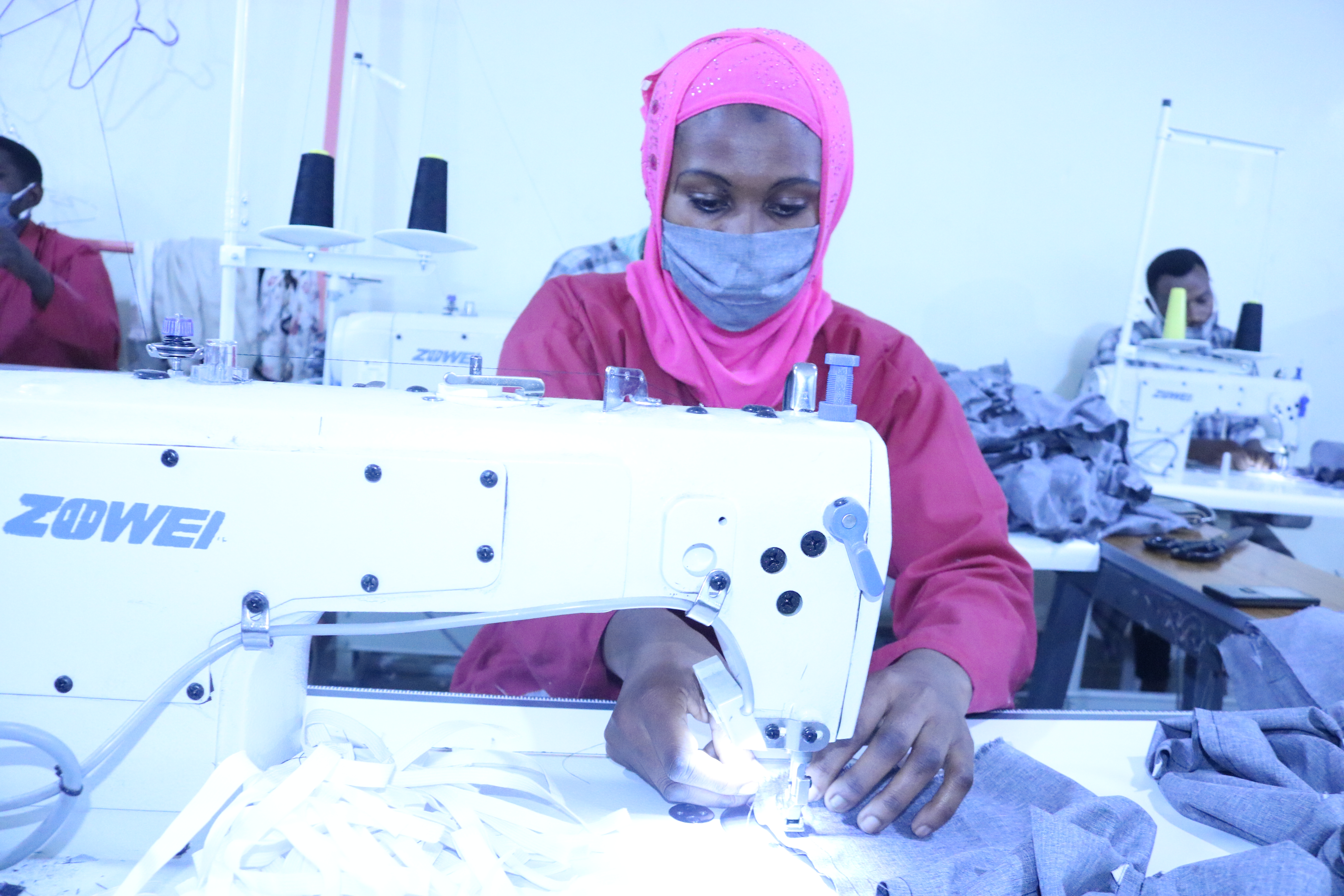 Apparel Manufacturing Group (AMG) fait partie des entreprises de couture et confection de vêtements autorisées à produire des masques. AMG est un investissement collectif de plus de 40 micro-entreprises de confection de vêtements, dont 10 collaborant avec le Programme d’Appui à l’Apprentissage sur le lieu de Travail. Le groupe produit des vêtements modernes, pour hommes, femmes et enfants, des sous-vêtements, ainsi que du linge de maison, comme des draps. Cependant, à cause de la pandémie de coronavirus, toutes les entreprises impliquées ont suspendu leur travail habituel pour produire des masques faciaux.