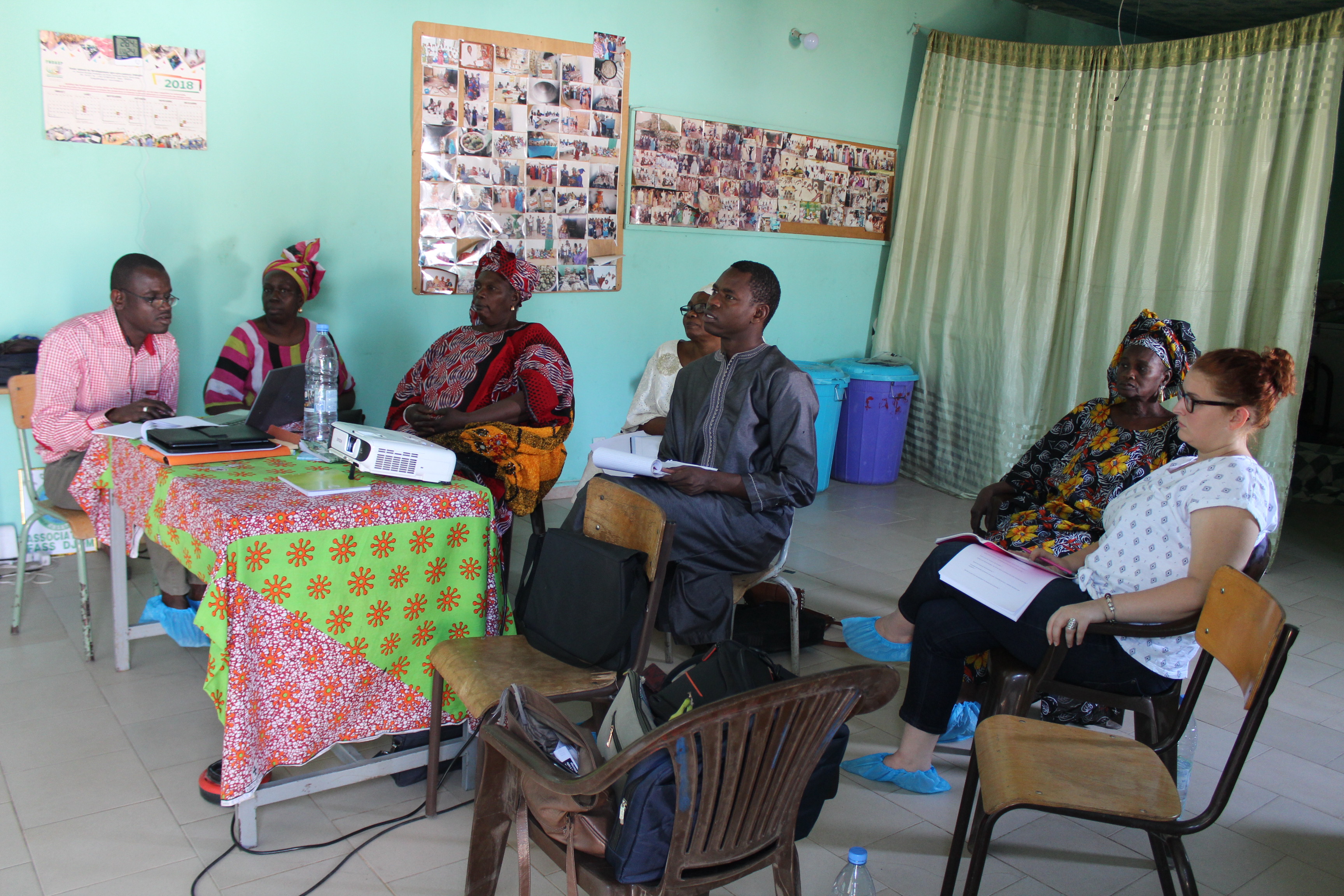 Les activités étaient similaires : il s’agissait de présenter le plan de développement et d’évaluer l’évolution des pratiques depuis les formations. Ici, la production est particulièrement importante et diversifiée, ce qui rend difficile la mise en place d’outils de gestion. L’équipe du programme a donc pris le temps d’analyser les contraintes et de proposer des alternatives qui pourraient faciliter la tenue quotidienne de la comptabilité. Lors de la formation, la secrétaire générale avait reçu une initiation à l’utilisation d’Excel et a aujourd’hui commencé à saisir les données collectées. A terme, une plateforme numérique Jigeen Ñi Tamit sera utilisée par l’ensemble des bénéficiaires pour y inscrire leurs activités et encoder leurs données de comptabilité, ce qui permettra à l’équipe d’effectuer un suivi détaillé à distance, et aux entrepreneures de partager leurs bonnes pratiques.