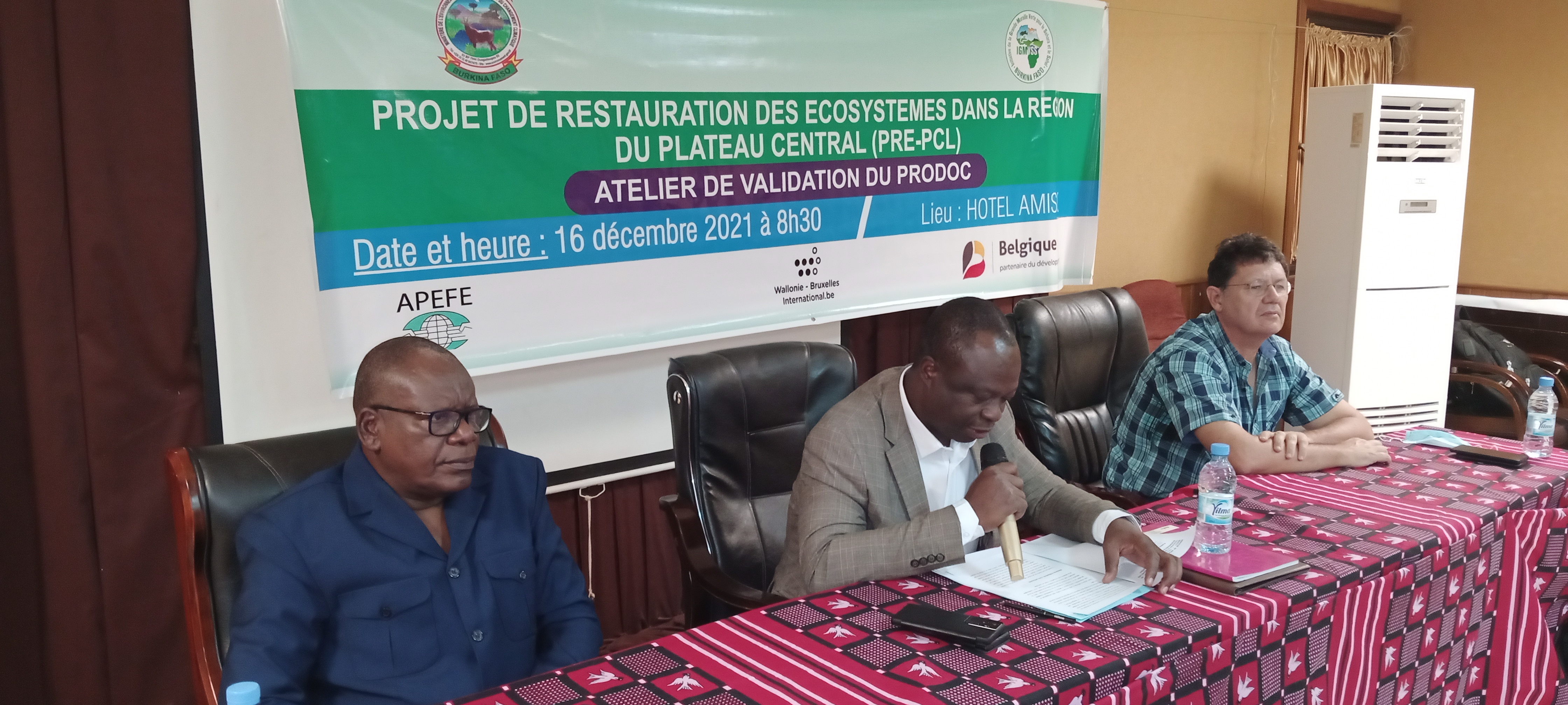 Le Projet de restauration des écosystèmes dans la région du Plateau central (PRE-PCL), vient à la suite de la seconde phase du Programme de Renforcement des Capacités pour l’IGMVSS. Il vise à améliorer la sécurité alimentaire et nutritionnelle et à accroître les revenus des hommes et des femmes de 4 communes de la région du Plateau central (Boussé, Niou, Toéghin et Laye) par un appui à la mise en œuvre des axes stratégiques 1, 2 et 4 de la stratégie et du plan d’actions de l’IGMVSS du Burkina Faso. D’un coût global de 1 767 460 808 FCFA, il est financé par le Gouvernement du Burkina Faso et la Coopération Belge au développement à travers l’APEFE. Sa mise en œuvre couvre une période de 5 ans, allant de janvier 2022 à décembre 2026.